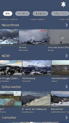 Rozšiřte své možnosti s nejnovější funkcí – inteligentními push oznámeními, která vás udrží neustále v obraze. Zapněte si „Novinky z kamer" a nechte se automaticky informovat o přidání nových kamerových míst nebo vzrušujících streamech z FlyingCam. Pro milovníky zimních sportů je tu „Upozornění na nový sníh" – personalizované zprávy založené na poloze, které vás upozorní na čerstvou nadílku v oblíbených střediscích. A aby vaše víkendy byly vždy slunečné, obdržíte každý pátek v 16:00 „Tip na slunečný víkend" s předpovědí nejlepších slunečných destinací pro nadcházející dny, což je ideální pro last-minute plánování.