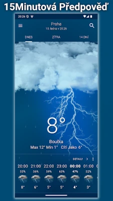 Ať už plánujete dalekou cestu nebo jen krátkou procházku, Jasné Nebe vás vybaví dokonalými nástroji. Pro dlouhodobé plánování využijte podrobnou předpověď na 14 dní, rozdělenou po hodinách, která vám umožní s klidem naplánovat dovolenou či venkovní aktivity. Potřebujete rychlý přehled pro nejbližší okamžiky? Naše unikátní předpověď na příští dvě hodiny v patnáctiminutových intervalech vám okamžitě ukáže, zda máte vzít deštník. Celý zážitek je navíc obohacen o nádherné animace, které oživují déšť, mraky a slunce přímo na vaší obrazovce, činíce tak sledování počasí příjemným a intuitivním.
